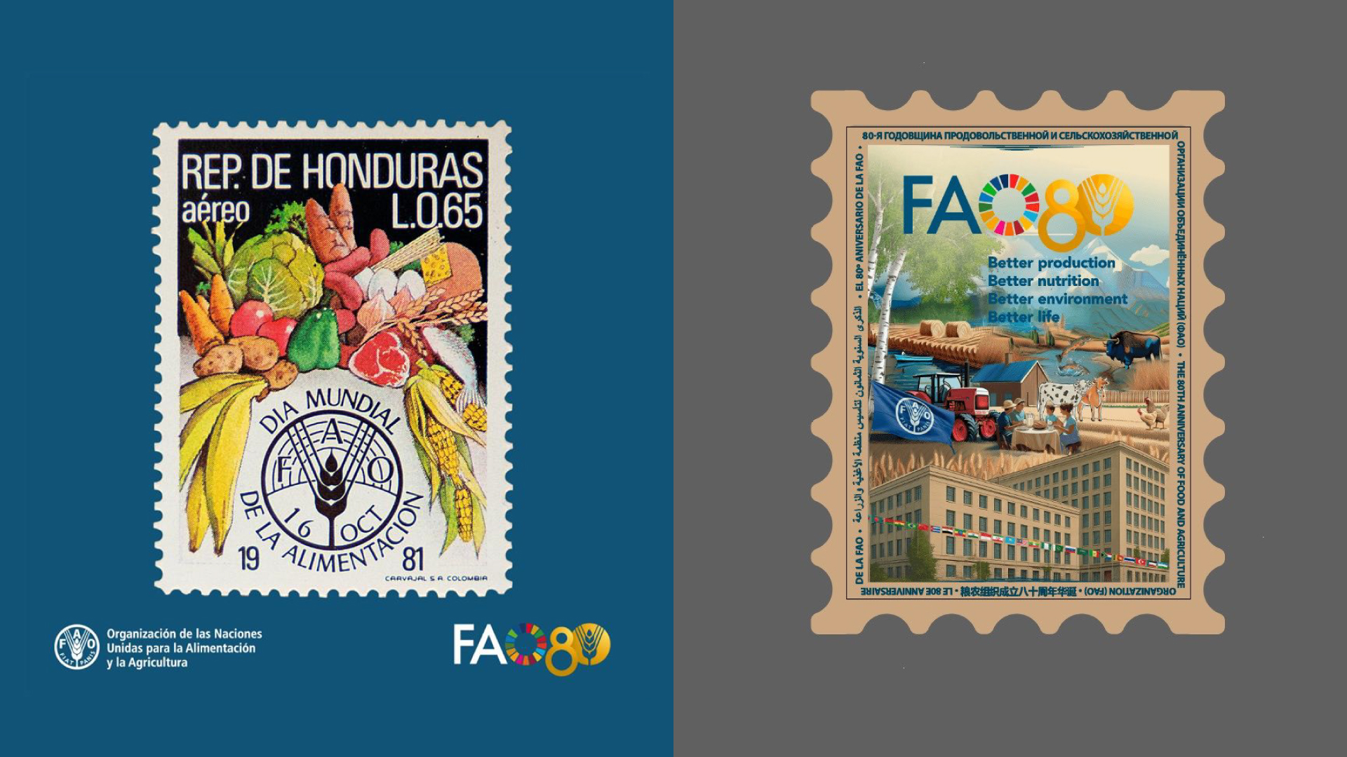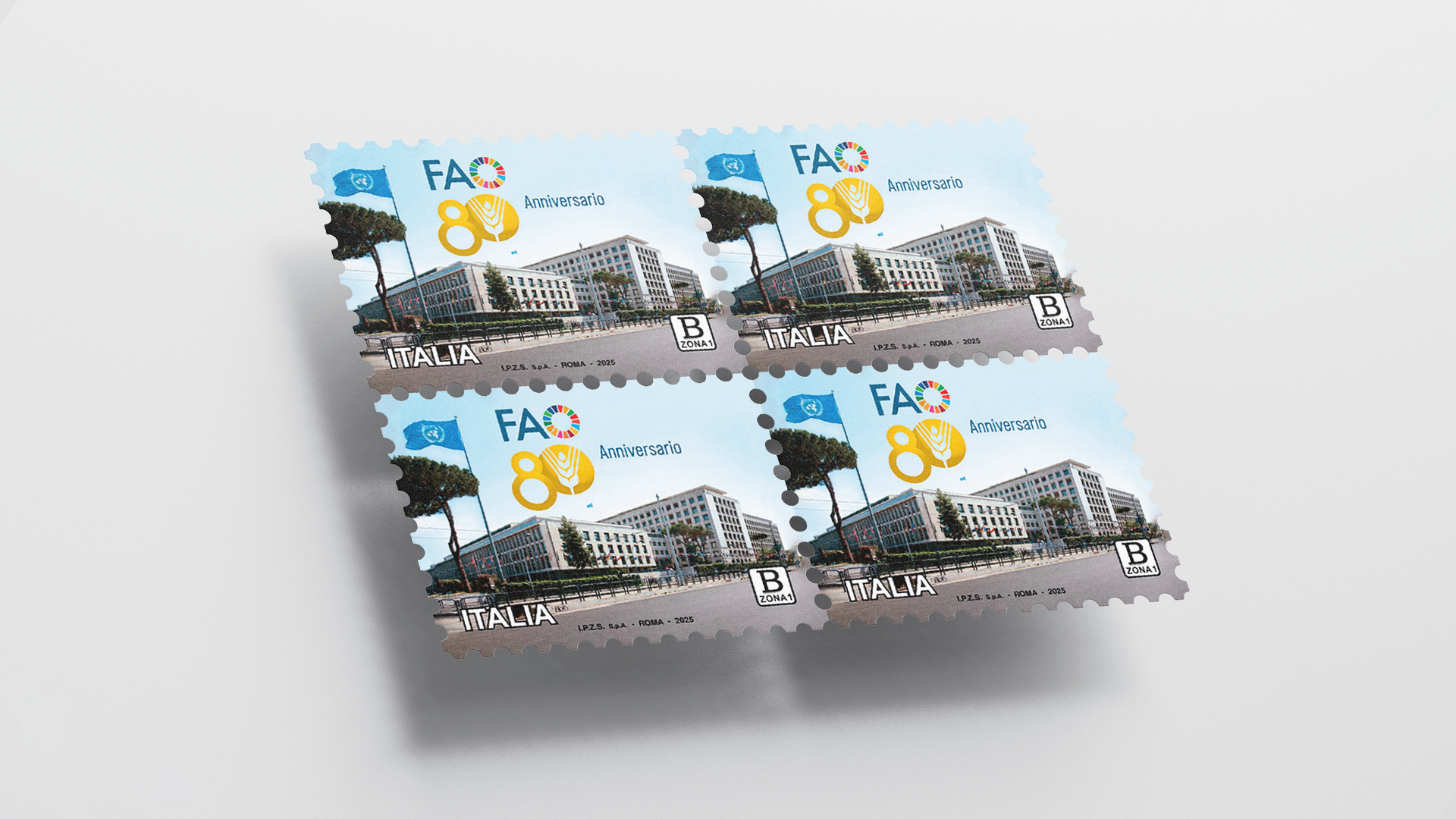 The Food and Agriculture Organization of the United Nations (FAO) today unveiled a commemorative postal stamp to mark its 80th anniversary. The initiative, promoted by the Ministry of Enterprises and Made in Italy in collaboration with the Italian State Mint and Polygraphic Institute (IPZS), Poste Italiane, was officially presented during the World Food Day ceremony at FAO headquarters in Rome.